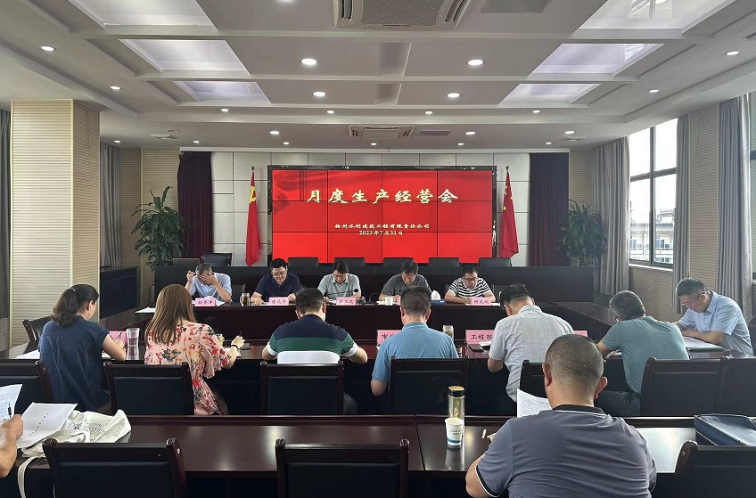 7月31日上午,九州(中国)召开月度生产经营会,公司总经理主持会议并讲话,经理室成员,各部室、扬州分公司、各在建项目负责人参加会议。