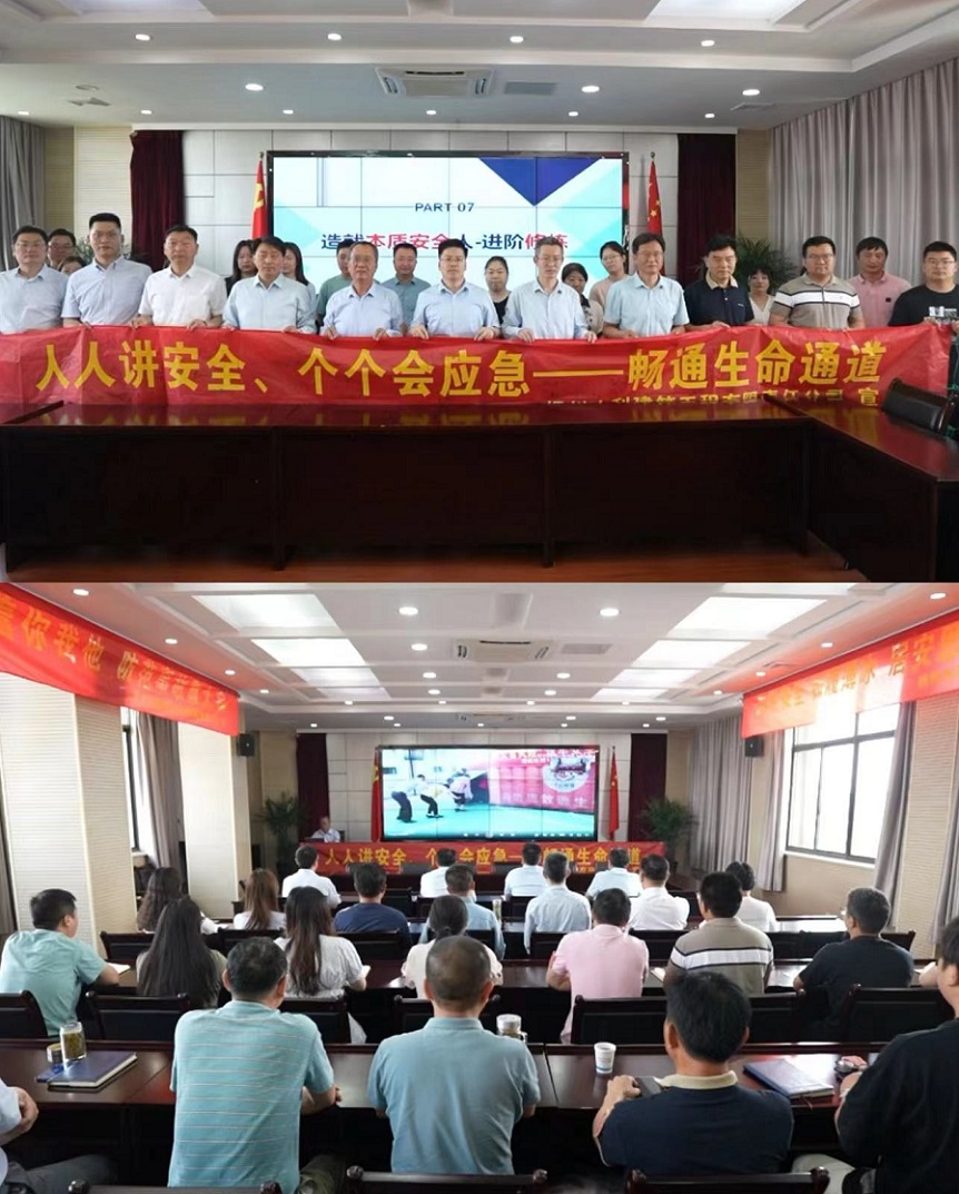 6月3日上午,九州(中国)举行2024年“安全生产月”活动启动仪式,深入学习贯彻习近平总书记关于安全生产的重要论述,认真落实党中央、国务院决策部署,坚持人民至上、生命至上,聚焦“人人讲安全、个个会应急——畅通生命通道”主题,筑牢公司高质量发展安全屏障。公司班子成员,各部室、扬州分公司、在扬项目部负责人和专职安全员现场参加活动,各驻外项目负责人通过视频会议的形式同步参与活动。