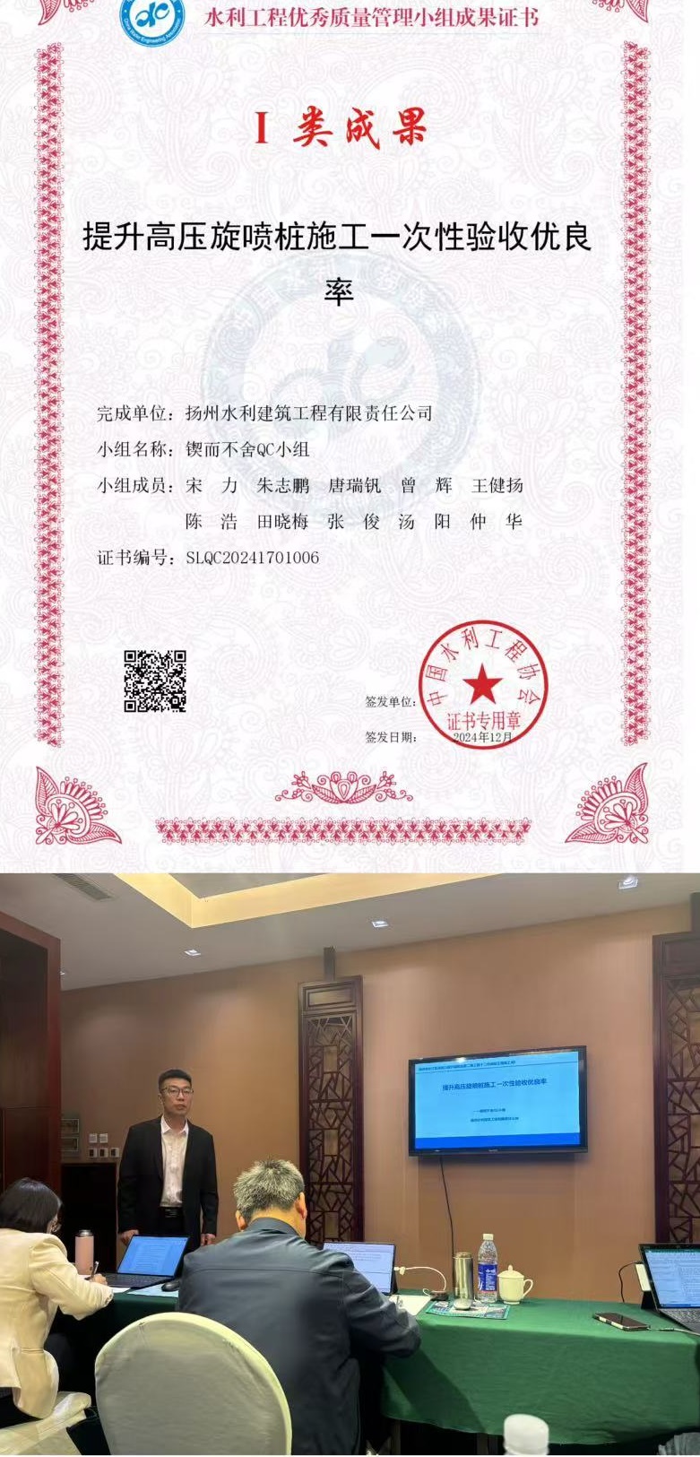 【概要描述】近日,中国水利工程协会开展2024年度水利工程优秀质量管理小组成果发表评价工作,九州(中国)携成果《提升高压旋喷桩施工一次性验收优良率》以线下发布形式亮相,在现场评选中脱颖而出,成功荣获优秀QC小组I类成果。 针对扬州十二圩闸站工程项目中高压旋喷桩一次性验收优良率偏低的问题,公司QC小组经过现场调查、分析,找到症结所在,分析确认,找出主要原因,并从有效性、可行性、经济性和创新性四个方面制定相应的对策方案。通过采用自制引孔套筒与PVC护管相结合的模式,优化引孔作业流程,同步对高压旋喷钻头进行优化改造,显著降低了症结的影响频率,将高压旋喷桩施工的一次性验收优良率提高到了既定目标。 近年来,公司切实加强质量管理小组活动统筹谋划、方向引领和重点成果培育,围绕安全、质量、效率、效益,深度融合专业优势和基层实践,聚焦班组一线,积极推进QC小组活动,切实解决了一些建设现场痛点和难点。下一步,公司将加大对技术人才的培育力度,持续推动QC质量小组活动的蓬勃开展,为项目建设提升品质与增强效率提供坚实保障,全面推进企业质量管理再上新台阶。